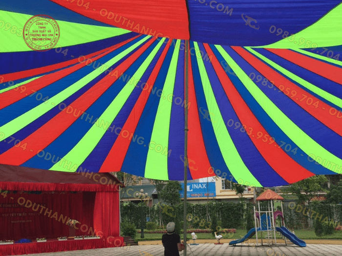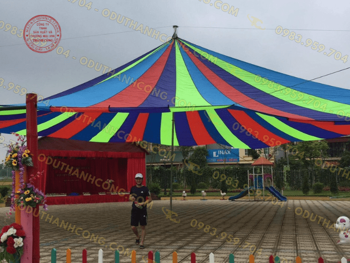 - Cách dựng dù: khi cung cấp dù che cho các trường chúng tôi sẽ là người trực tiếp đi lắp. Nhằm đảm bảo lắp đúng và đủ quy trình. Còn nếu trường học muốn tự lắp đặt thì chúng tôi sẽ hướng dẫn tận nơi cho quý khách hàng.