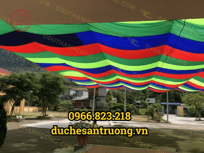 – Thành Công chuyên sản xuất các mẫu dù che tiện lợi có nhiều ứng dụng khác nhau. Từ việc sử dụng cho khuôn viên trường học ngày nay. Cũng có khá nhiều các trường học đang sử dụng các mẫu dù 2 mái chạy cáp tiện lợi bên Thành Công nhằm mang lại bóng mát cho khuôn viên trường.