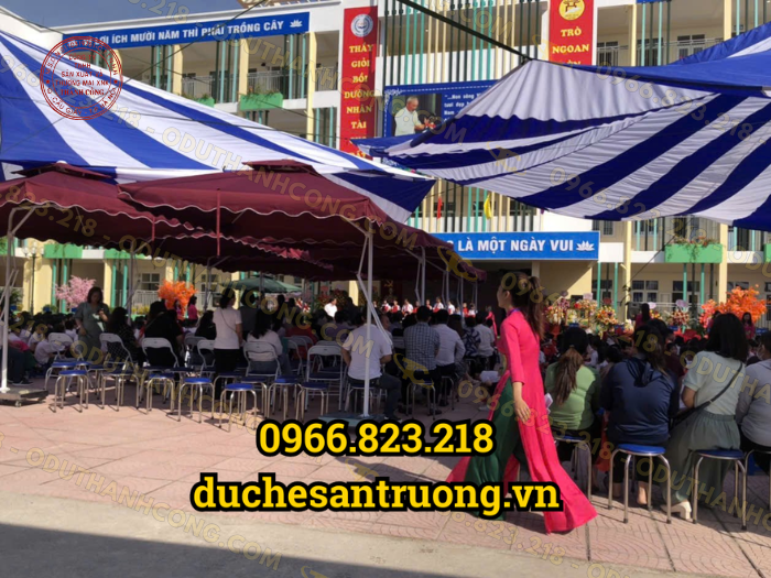 - Ô Dù Thành Công nổi tiếng với sản phẩm chất lượng cao và dịch vụ chăm sóc khách hàng tận tình. Chúng tôi cung cấp nhiều loại ô dù đa dạng về mẫu mã và kích thước, đáp ứng nhu cầu của các trường học.